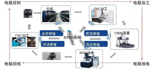 具體實(shí)現(xiàn)方式是對(duì)每個(gè)電極管安裝RFID標(biāo)簽,從晶體管入庫(kù)、生產(chǎn)、測(cè)量、放電的全流程進(jìn)行瓜農(nóng)空。通過對(duì)庫(kù)存、配置、現(xiàn)場(chǎng)的數(shù)據(jù)采集,從電極的設(shè)計(jì)延伸到制造、測(cè)量和使用的全過程,使數(shù)據(jù)和制造無縫交互,實(shí)現(xiàn)全流程的自動(dòng)化,無人化